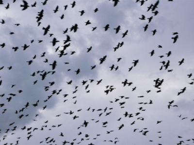 Gestern wurde ich noch Zeugin einer Vogelwanderung. Der ganze Schwarm hatte sich auf dem Dach direkt gegenueber vom Hostel niedergelassen. Ich hab tolle Bilder gemacht!